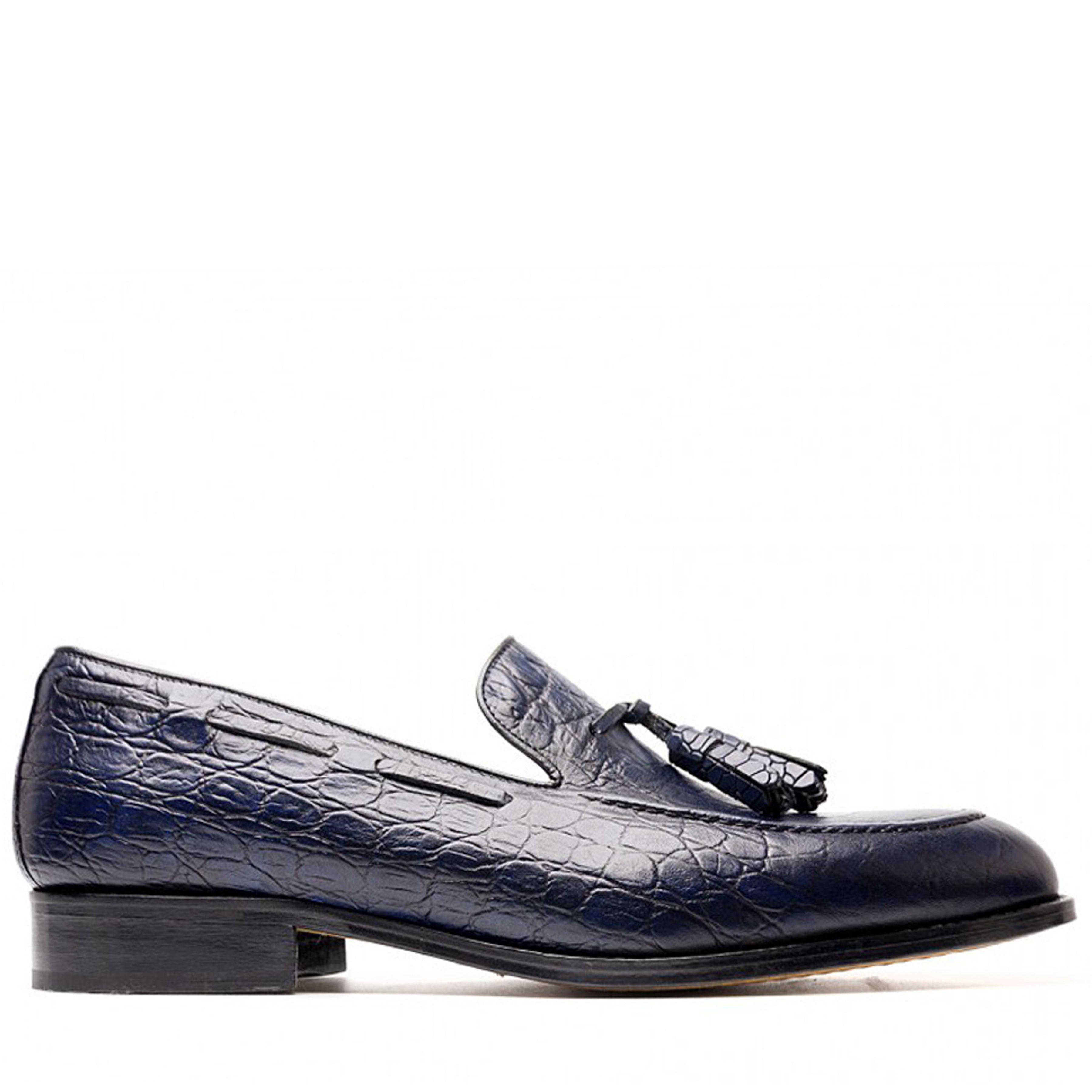 Manzoni Handmade Embossed Tassel Leather Loafers